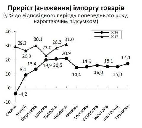 У січні-червні цього року, порівняно з цими місяцями минулого року, експорт зріс на 22% або на 130,7 млн дол, імпорт – на 31% або на 234,7 млн дол.