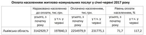 У січні-червні 2017 року за електроенергію населенням Львівщини було сплачено 581,1 млн.грн, заборгованість на кінець червня 2017 року становила 65,3 млн.грн.