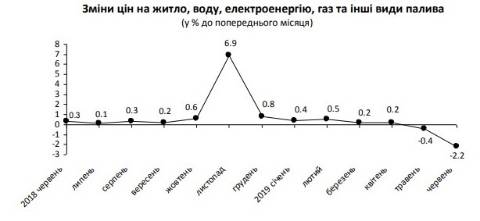 Зниження цін у житлово-комунальній сфері на 2,2% відбулося за рахунок зниження тарифів на газ природний (на 6,4%). Вартість інших комунальних