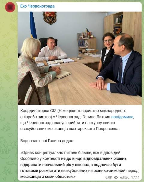 Водночас, як заявила координаторка німецького товариства міжнародного співробітництва GIZ у Червонограді Галина Литвин, у місті ще не вирішені проблеми із розселення переселенців з шкіл, які мають відкрити 1 вересня.