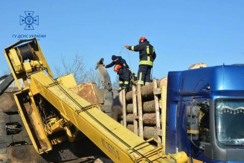 На території підприємства під час розвантаження дерев’яних колод перекинувся автокран, загинув кранівник.