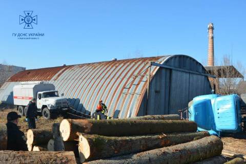 Вчора, 1 березня, о 13:21 год на вул. Олега Дяківа, 1 у Дрогобичі на території підприємства під час розвантаження дерев’яних колод перекинувся автокран ЗІЛ-130.