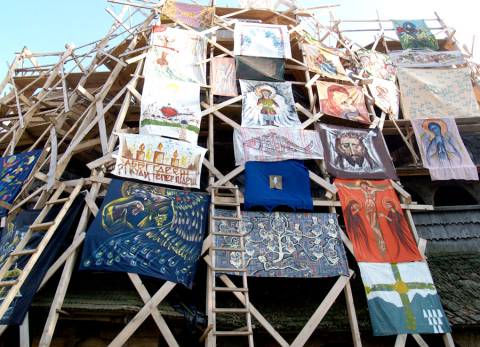 Цими вихідними художники творчого об'єднання "Кактус" вбрали дерев'яну церкву Св. Юрія, що у Дрогобичі десятками живописних картин.