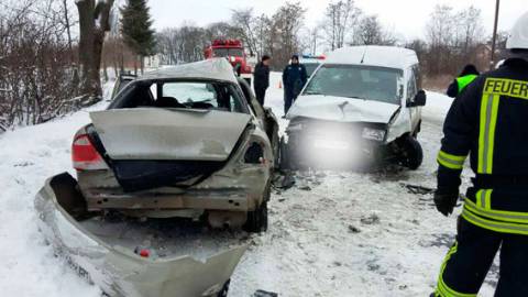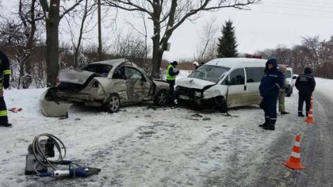 Як попередньо встановили правоохоронці, водій автомобіля «Нісан Альмера» не впорався з керуванням на слизькій дорозі, виїхав на смугу зустрічного руху, де зіткнувся з автомобілем «Фіат Скудо».
