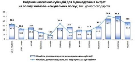 Нагадаємо, у листопаді 2016 року субсидії на оплату житлово-комунальних послуг отримали 416 тис сімей.