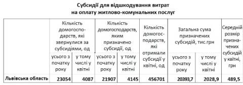 Нагадаємо, станом на 1 квітня субсидії на оплату житлово-комунальних послуг отримали 455,4 тисяч домогосподарств.
