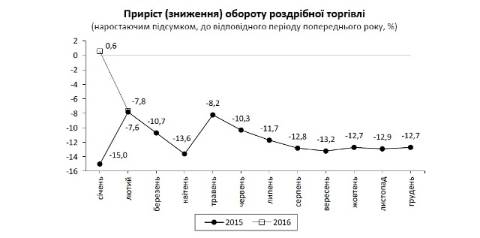 Нагадаємо, у січні цього року торгівля у роздріб склала 4 461,5 млн грн, що на 0,6% більше, ніж у січні 2014 року.