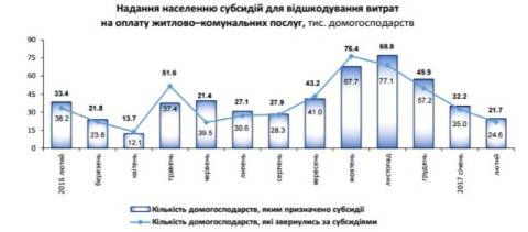 За кількістю членів сімей, які отримують субсидії, переважають родини із однієї особи, у лютому 2017 року їх частка склала 25%. Загальна сума субсидій, призначених для відшкодування витрат на оплату житлово-комунальних послуг у січні-лютому 2017 року становила 104,2 млн грн.