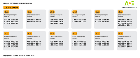 Сьогодні, 16 січня, на території Львівської області енергетики застосовуватимуть графіки погодинних відключень електроенергії.