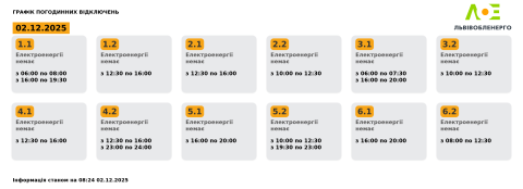 Сьогодні, 2 грудня, на території Львівської області енергетики застосовуватимуть графіки погодинних відключень електроенергії.