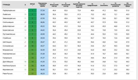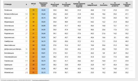 У Львівській ОВА підготували комплексний рейтинг територіальних громад, починаючи з початку року і станом на 1 серпня, який очолила Підберізцівська громада.