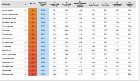 Натомість останні три місця зайняли Стрілківська, Лопатинська та Хирівська громади.