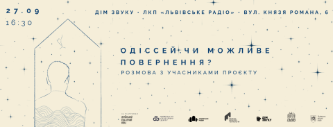 У суботу, 27 вересня, о 16:30 год у публічному просторі "Дому Звуку" у Львові, що знаходиться в історичній будівлі "Львівського радіо" на Князя Романа, 6, відбудеться розмова з учасниками проєкту "Одіссей. Чи можливе повернення?".