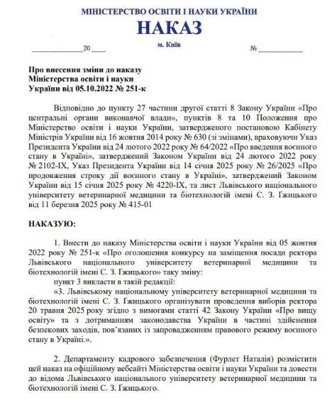 Зазначимо, конкурс на посаду ректора цього вишу у МОН оголосили у середині березня цього року.