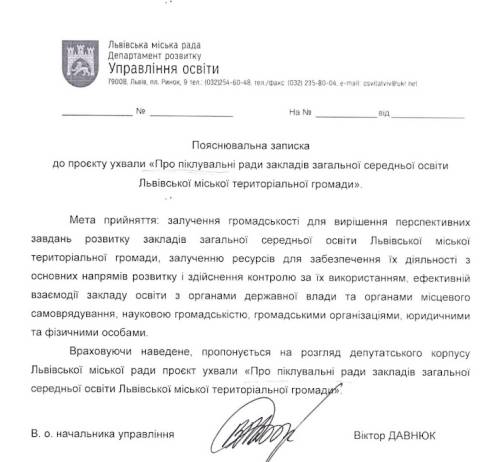 Склад цих піклувальних рад формуватиме управління освіти Львівської міськради на основі поданих школою пропозицій.