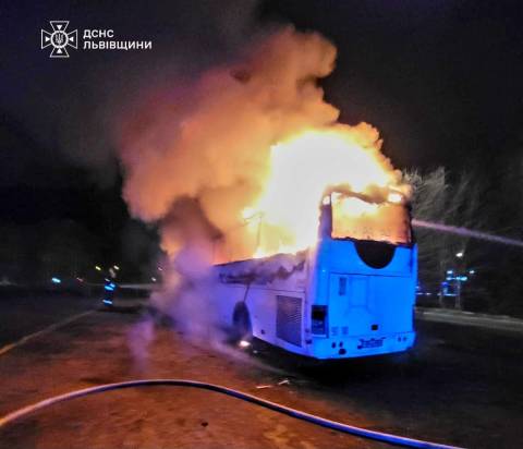 Вчора, 16 березня, близько 21:53 год на стоянці, що на вул. Богдана Хмельницького у районі Галицького перехрестя у Львові, пролунав вибух й згорів туристичний автобус.