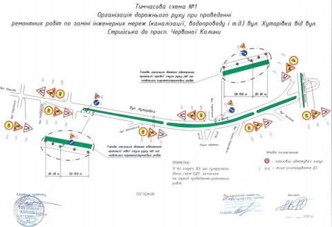 Крім цього, передбачено будівництво двох нових світлофорів на вул. Хуторівка, 8 та між вул. Хоткевича та вул. Чукаріна, а також реконструкцію світлофора на вул. Хуторівка, 4б.