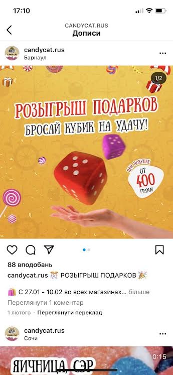 "Завдяки вашій підтримці ми йдемо вперед! На нас чекають нові міста й країни. А це означає, що ми запрошуємо тебе до команди Candy Cat" – такий допис російською мовою опублікований на російській сторінці компанії.
