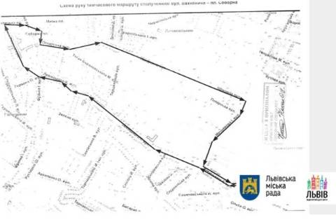 Як повідомили в управлінні транспорту та зв’язку міськради, через перекриття руху транспорту на вул. Мечникова (від вул. Пекарської до вул. Шімзерів), для забезпечення доїзду пасажирів з мікрорайону Погулянка до центру Львова, з 1 вересня до 31 жовтня буде курсувати тимчасовий автобусний маршрут «вул. Вахнянина – пл. Соборна».