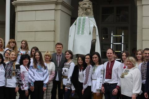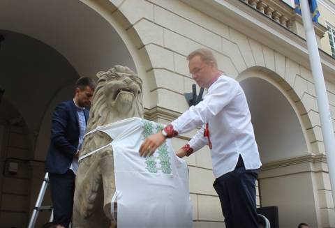 Одягав левів у вишиванки міський голова Андрій Садовий та студентський мер. За його словами, це вже традиційна львівська подія.