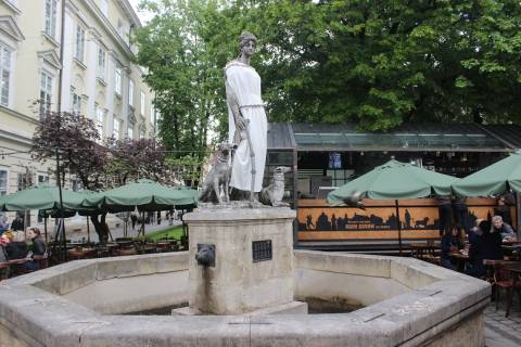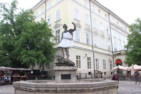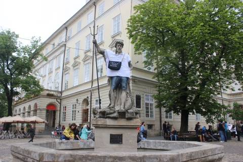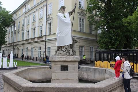 З нагоди свята статуї античних богів та левів на площі Ринок одягнули у вишиванки.