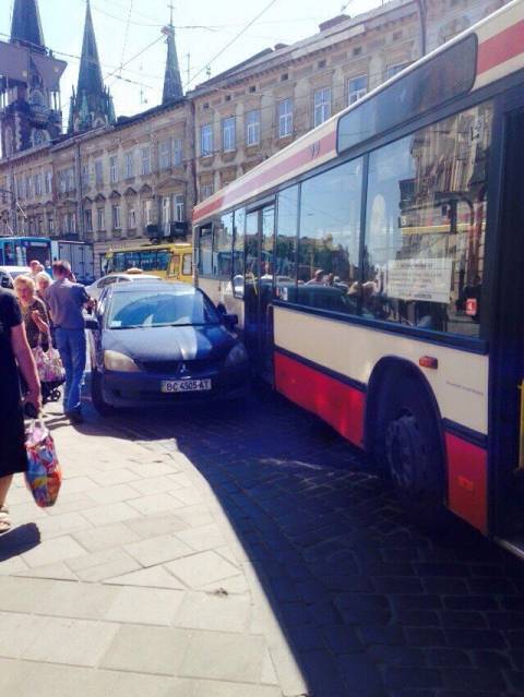 Сьогодні у Львові на вул. Городоцькій маршрутка №31 зачепила іномарку.