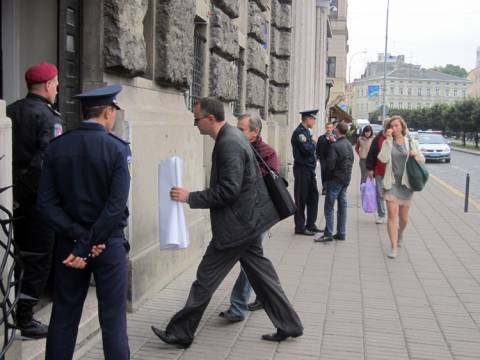 О десятій годині ранку мітингувальники зібралися під Головним управлінням МВС у Львівській області, але представники міліції не вийшли до мешканців ОСББ. Тож мітингувальники самі віднесли плакати в приміщення міліції області.