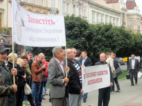 Сьогодні мешканці та адміністрація ОСББ "Чорний віл" пікетували ГУ МВС у Львівській області та прокуратуру міста Львова.