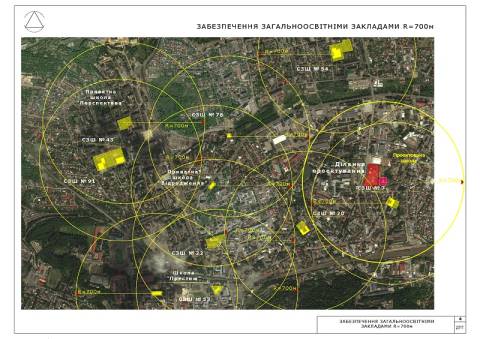 Забезпечення житлового кварталу школами та дитячими садочками передбачають за рахунок існуючих навчальних закладів в мікрорайоні. Крім цього у проекті зазначено, що на сусдній ділянці є проектована Школа-ліцей на 24 класи, на 720 учнів, об’єднана з дошкільним навчальним закладом на 60 місць.