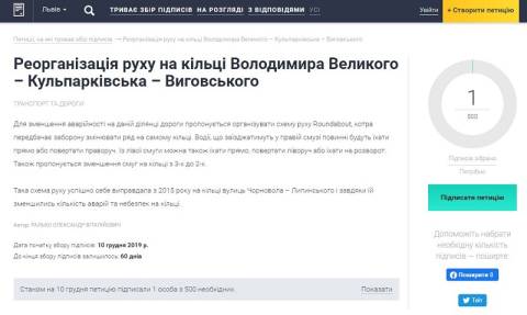 10 грудня, на порталі е-петицій Олександр Ралько зареєструвув петицію з вимогою реорганізувати рух на кільці Володимира Великого – Кульпарківська – Виговського