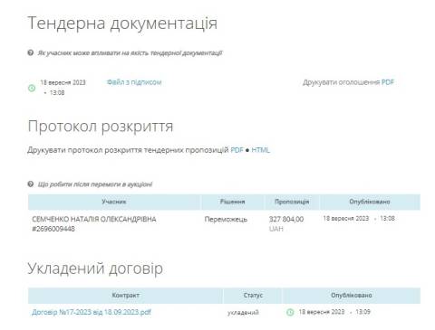 Аукціон стартував 18 вересня, участь у ньому взяла лише підприємниця Наталія Семченко, яка погодилась відкоригувати проєктно-кошторисну документацію за встановлену Львівською ОВА ціну у 327 804 грн.