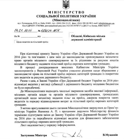 Зазначимо, у державному бюджеті на 2016 рік не було виділено коштів на перевезення пільговиків.