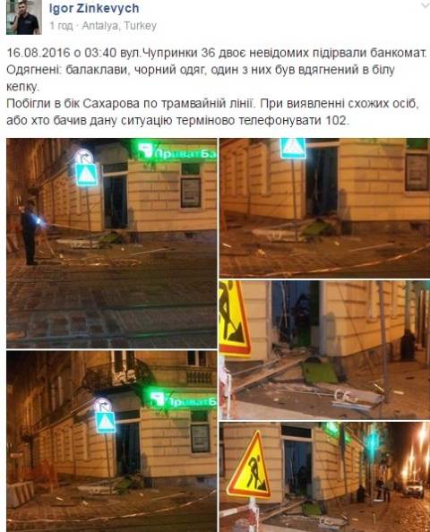 Натомість як зазначають активісти у спільноті Варта 1, підірвали відділення банку двоє невідомих осіб, що були вдягнені у балаклави та чорний одяг.