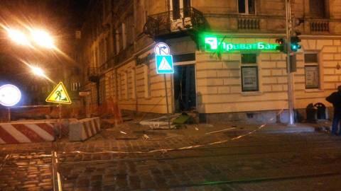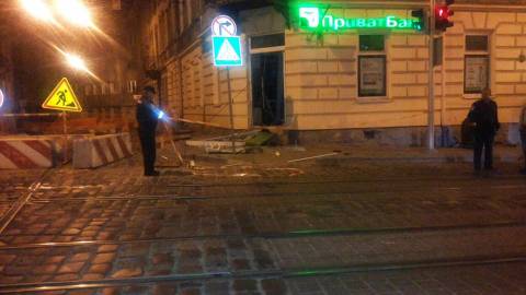 Сьогодні вночі у Франківському районі зловмисники підірвали одне з відділень Приватбанку.