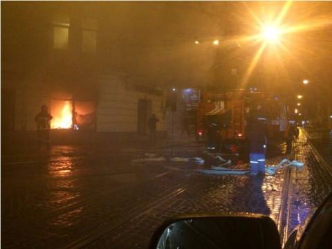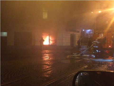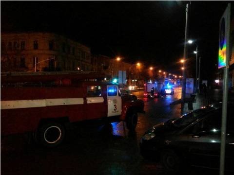 Водночас о 01:01 год поступило повідомлення про ще одну пожежу – на вул. Івана Франка, 79 горів Сбербанк Росії, що розташований на першому поверсі триповерхового житлового будинку.