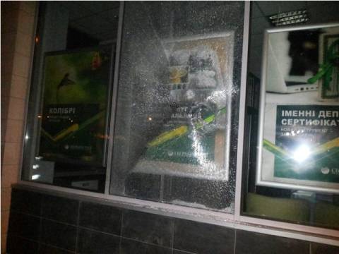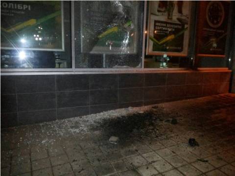 Втім, пожежі не виникло, невідомі пошкодили лише вікно фінустанови.
