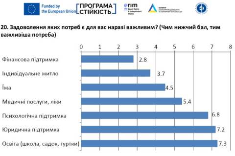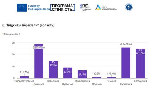 За результатами результатами найбільше внутрішньо переміщених осіб переїхали з Донецької та Харківської областей і 95% з них офіційно зареєстровані як ВПО. Крім цього, 70% вже змогли працевлаштуватися на новому місці, при цьому не користуючись послугами служби зайнятості, однак рівень їхньої заробітньої плати від 4 до 6 тисяч гривень.