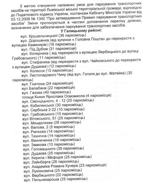 За словами директорки департаменту економічної політики міськради Ірини Кулинич, йдеться про облаштування 102 нових майданчиків для паркування транспортних засобів на близько 2500 паркомісць.