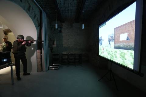 У місті для підготовки бійців Національної гвардії України придбали необхідне обладнання та облаштували інтерактивний тир. На цьому симуляторі військові можуть тренуватися в режимі доповненої або віртуальної реальності, моделюючи різні ситуації з використанням найрізноманітнішої зброї.
