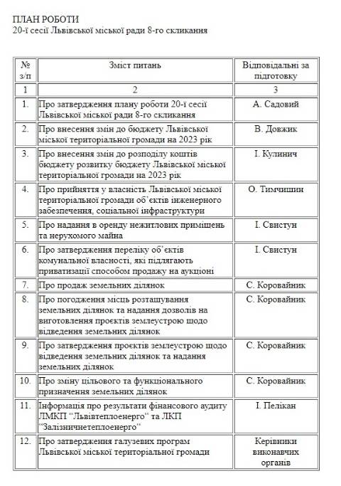 "Скликати 20-у сесію Львівської міської ради 8-го скликання 28 вересня 2023 року о 10-й годині у сесійному залі міської ради. Сформувати порядок денний 20-ї сесії Львівської міської ради 8-го скликання" – йдеться у розпорядженні.