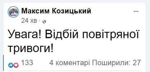 "Увага! Повітряна тривога! Зберігайте спокій! Слухайте повідомлення цивільного захисту на UА:Львів 1 Західний! Дійте згідно інструкцій! Повідомте сусідів, осіб з обмеженими можливостями" – йдеться у повідомленні.