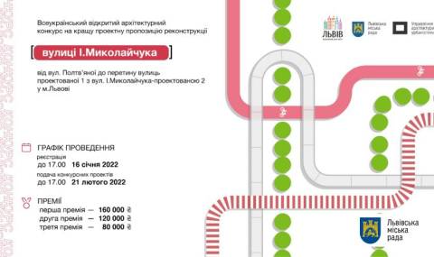 У місті оголосили всеукраїнський відкритий архітектурний конкурс на кращу проєктну пропозицію реконструкції вул. І. Миколайчука, зокрема, на ділянці від вул. Полтв’яної до перетину вулиць проектованої 1 з вул. І. Миколайчука-проектованою 2.