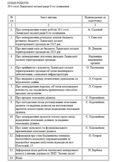 "Скликати 36-ту сесію Львівської міської ради 8-го скликання 20 лютого 2025 року о 10-й годині у сесійному залі міської ради. Сформувати порядок денний 36-ї сесії Львівської міської ради 8-го скликання" – йдеться у розпорядженні.