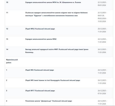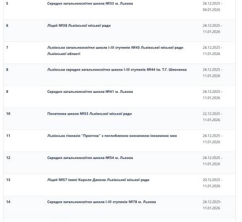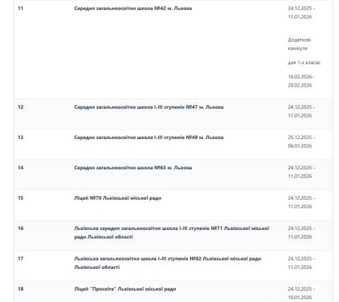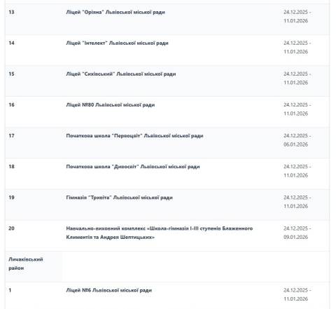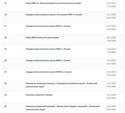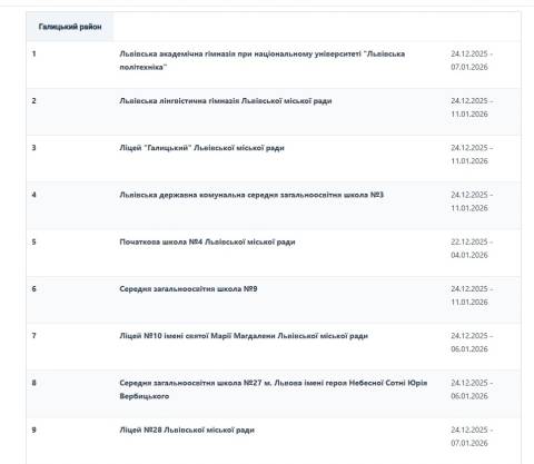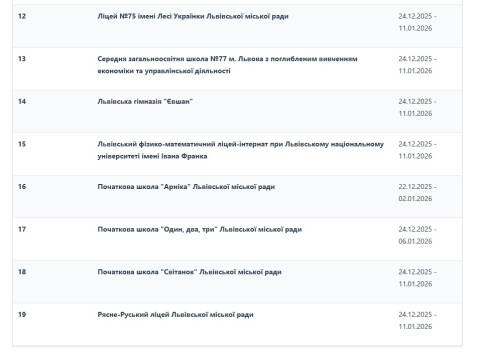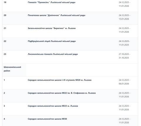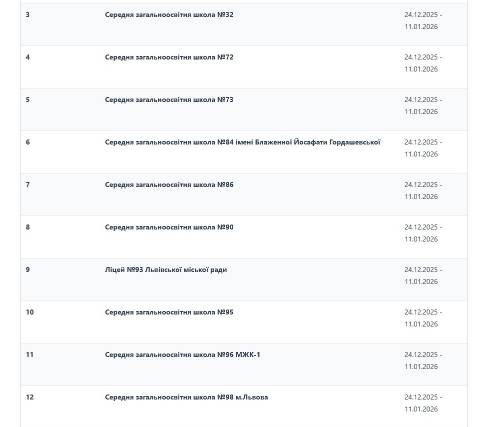 З 24 грудня у більшості шкіл Львівської міської територіальної громади стартують зимові канікули, які триватимуть орієнтовно 2 – 3 тижні.