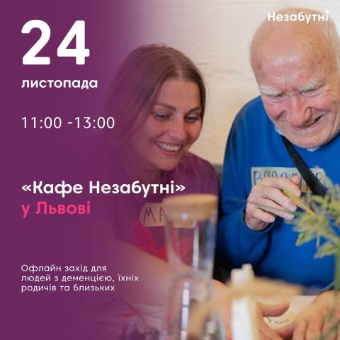 Подія "Кафе "Незабутні" для людей з деменцією та їхніх рідних відбудеться 24 листопада.