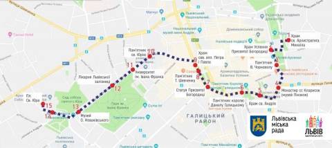 Маршрут ходи: вул. Винниченка, 22 (храм святого Архистратига Михаїла) – вул. Підвальна – пл. Митна – пл. Соборна – пл. Галицька – пл. А. Міцкевича — просп. Свободи (проти руху) – вул. Академіка В. Гнатюка – пл. Генерала Г. Григоренка – вул. Листопадового Чину – пл. Святого Юра.