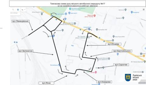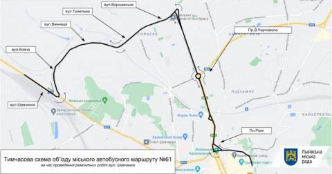 Через це міські автобусні маршрути №17 та №61 тимчасово курсуватимуть за зміненою схемою руху. Зокрема, маршрут №17, який курсує із вул. Рудненської до вул. Миколайчука здійснюватиме об’їзд вулицями: