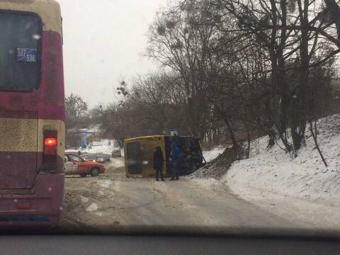 «Нам повідомили про цю ДТП біля заводу «Ензим». Автобус, який перекинувся, обслуговує приміський маршрут. Поліція працює на місці ДТП. За попередньою інформацією, автобус не перебував на рейсі», – додав начальник управління транспорту міськради Віктор Щир.