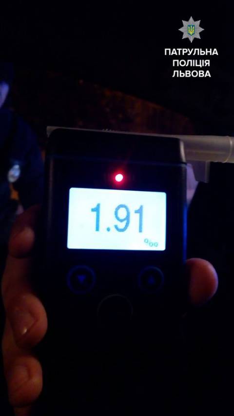 Тест на драґері показав 1,91 проміле алкоголю в крові водія.