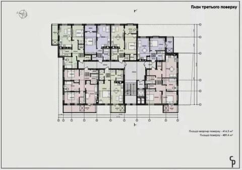На першому поверсі обладнають комерційні приміщення, а три верхні поверхи по 7 квартир кожен утворюватимуть житлову зону. Також тут передбачені 3 дитячі майданчики.